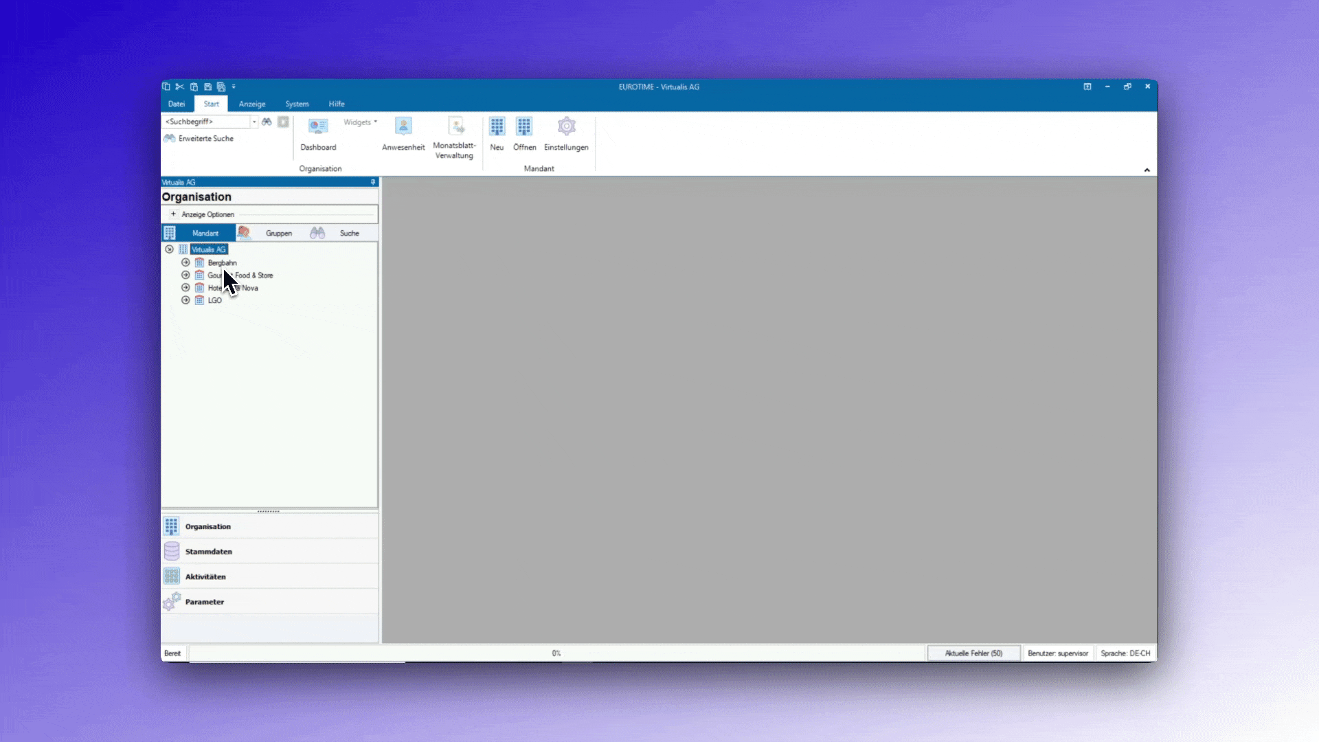 - Rechtsklick auf Betrieb, Abteilung, Person oder Gruppe in der Organisationsstruktur