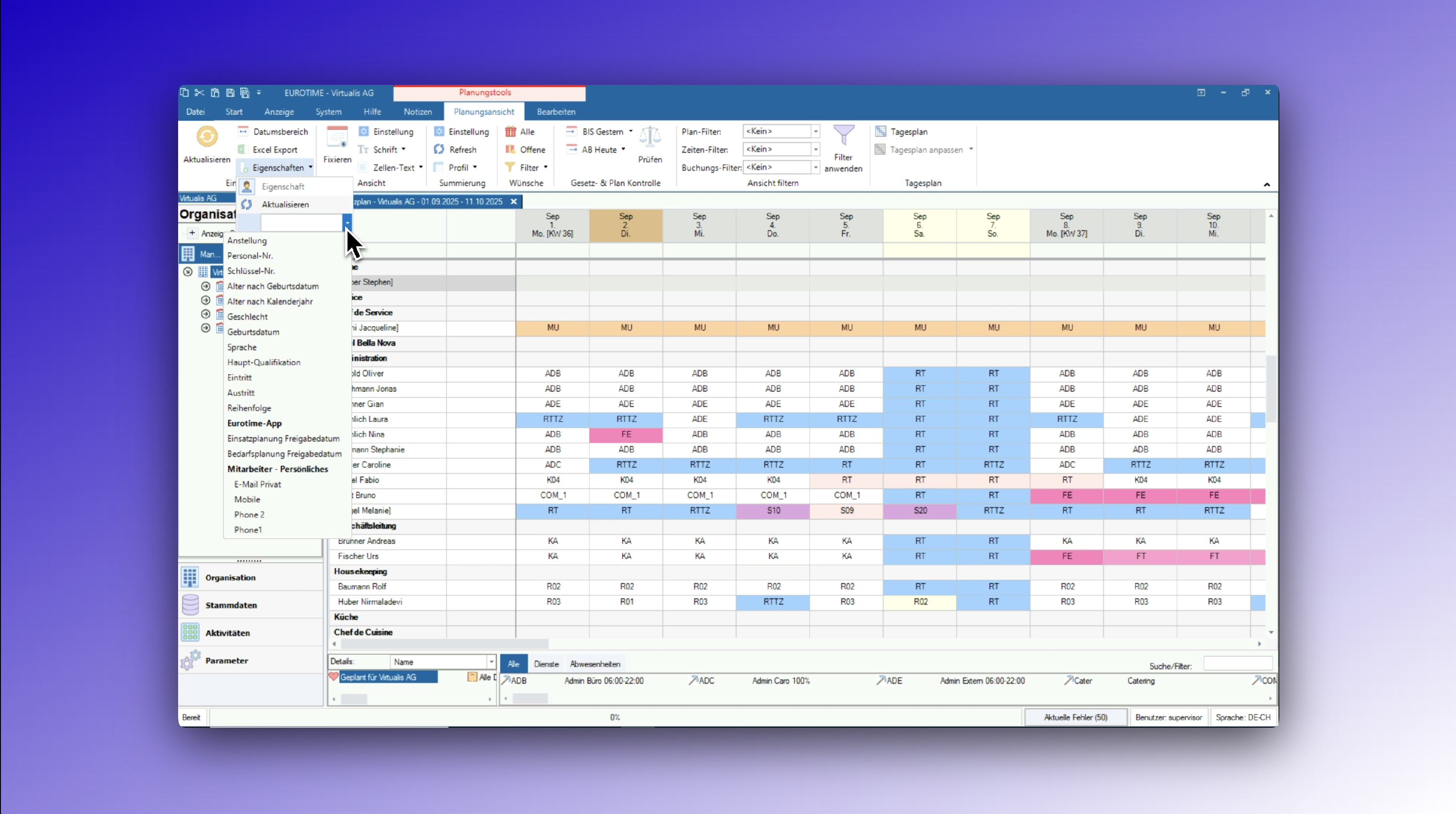- Planung Plus → fügt eine Planungszeile bei einer Person ein