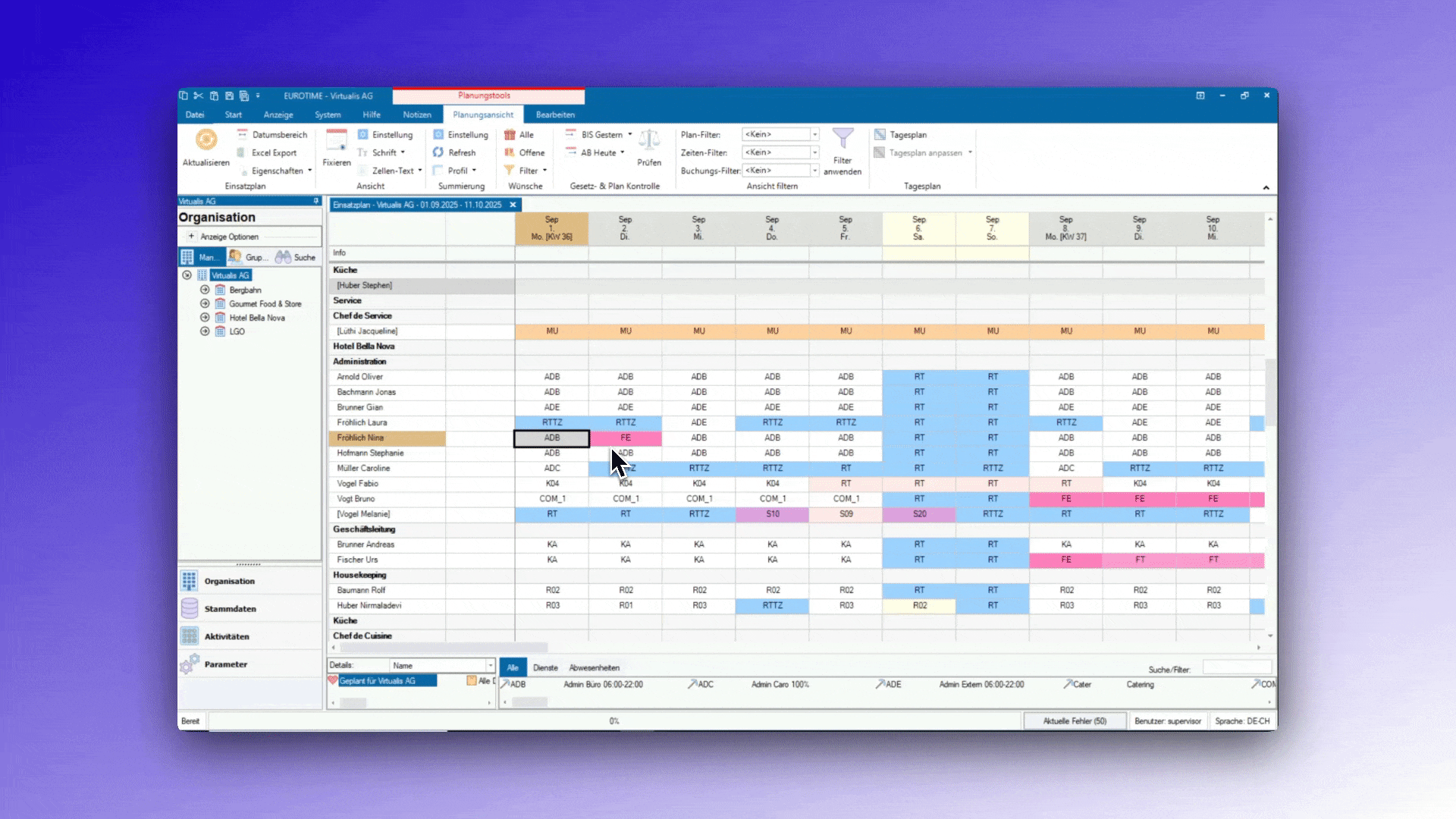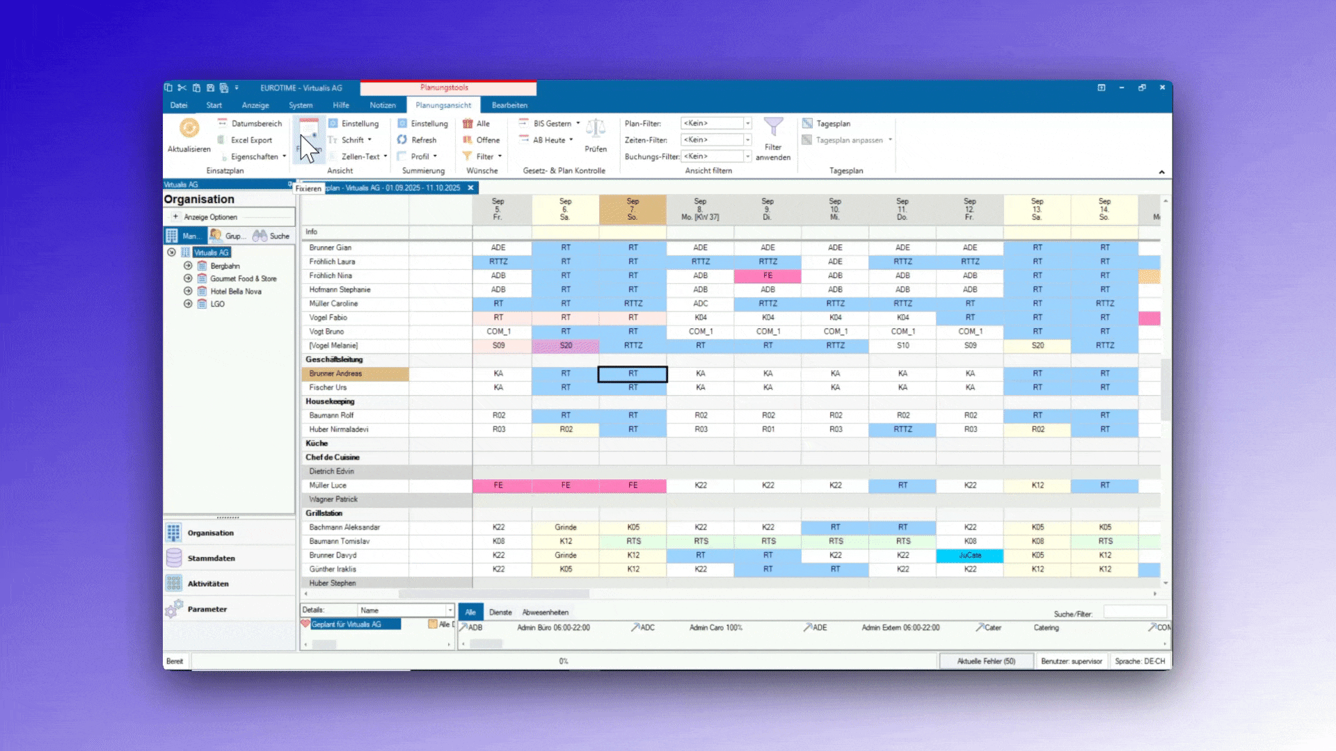 Eurotime basiert auf einer vollständigen Planung. Tage ohne Planung sind für die meisten Anstellungen nicht erlaubt und müssen vermieden werden.