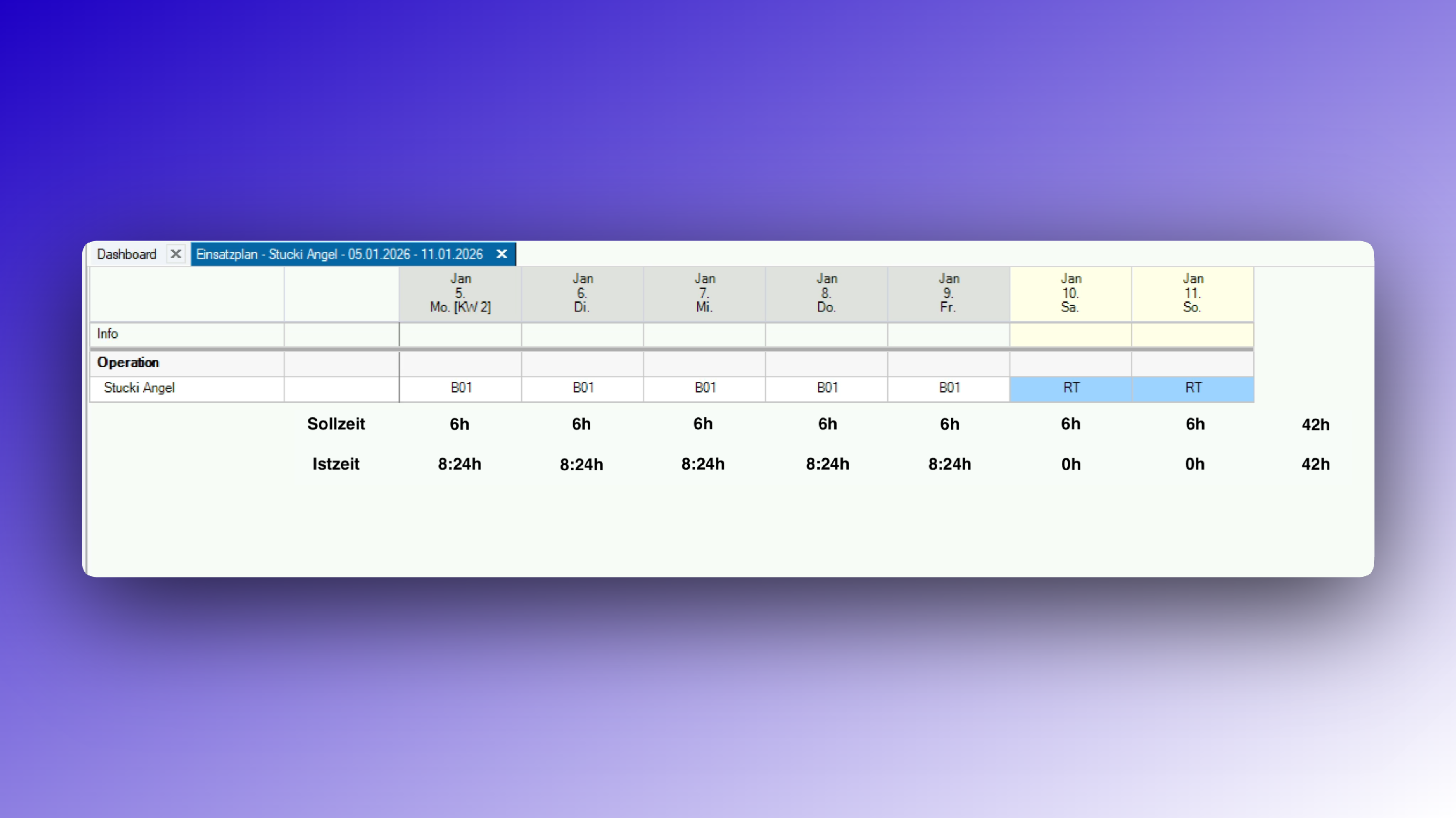 Ausgangslage: Wochenplan 7x6 Sollzeit