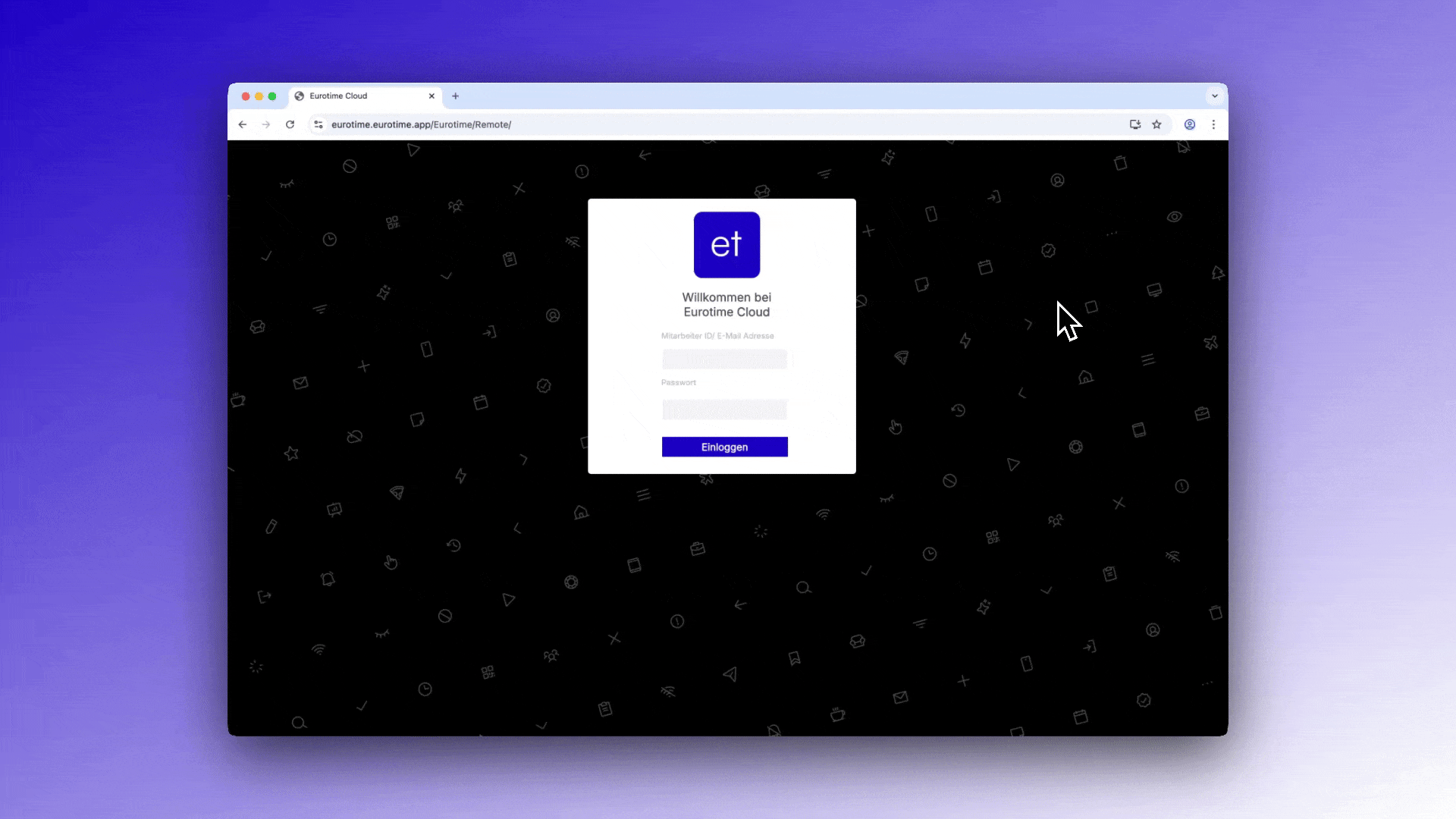 - Rufe die Adresse deiner Eurotime-Installation im Browser auf. Falls du diese nicht kennst, wende dich an deinen Administrator oder an Eurotime